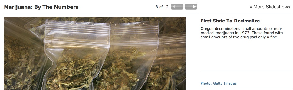 I did chuckle when I saw the slide above, describing the history of marijuana decriminalization in the State of Oregon. Oregon’s history with the metric system is another matter, I presume.